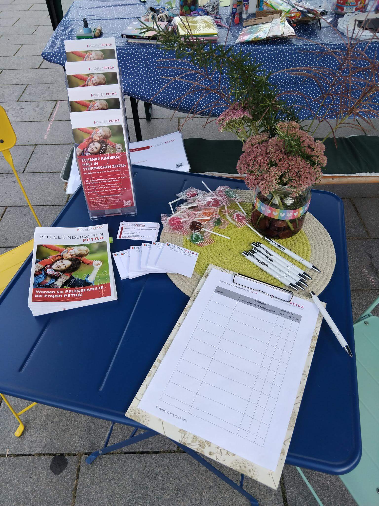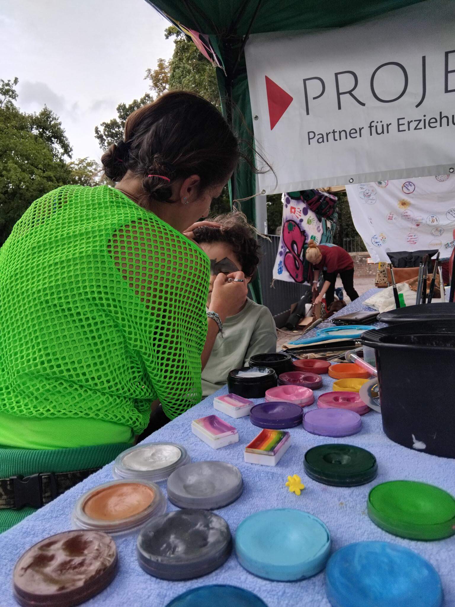 Wir freuen uns, erstmals die Unterstützung eines Mutter-Tochter-Teams gehabt zu haben, das Kinderschminken und Glitzertattoos anbot, während unsere Fachdienstmitarbeiterinnen mit wartenden Eltern Gespräche rund um das Thema Pflegewesen führten.