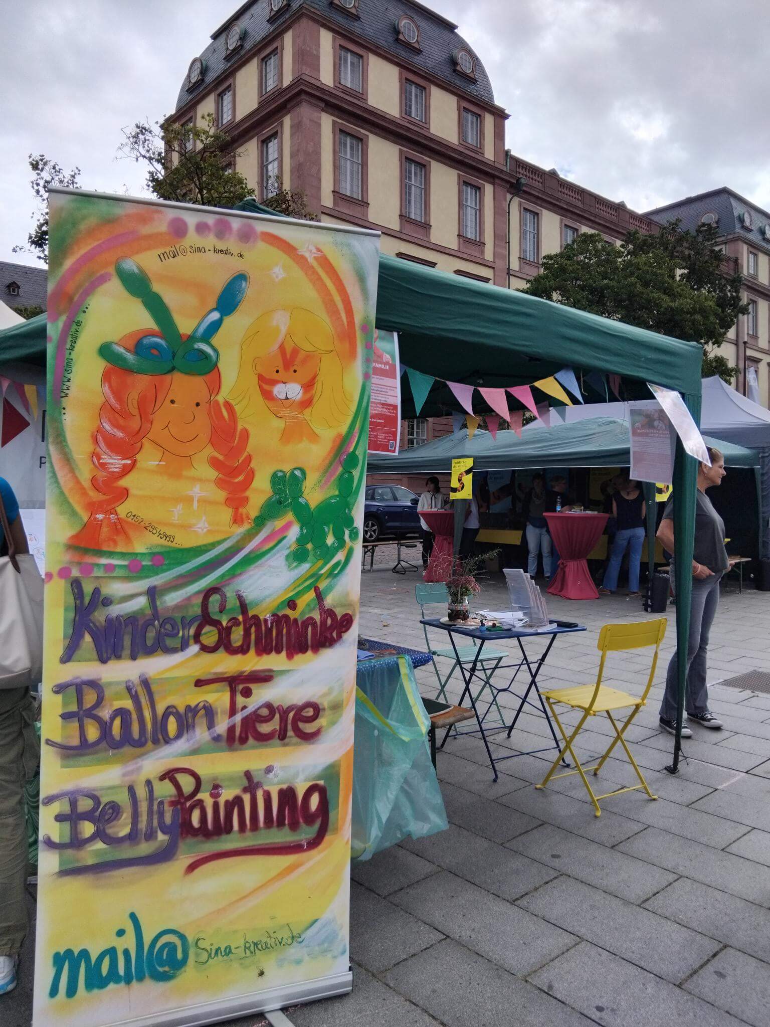 Der Tag beginnt mit einem Kindergottesdienst und der feierlichen Eröffnung durch Darmstadts Bürgermeisterin Frau Akdeniz, die später auch unseren Stand besuchte. Anschließend folgt ein buntes Programm mit zahlreichen Aufführungen verschiedenster Kindergruppen.